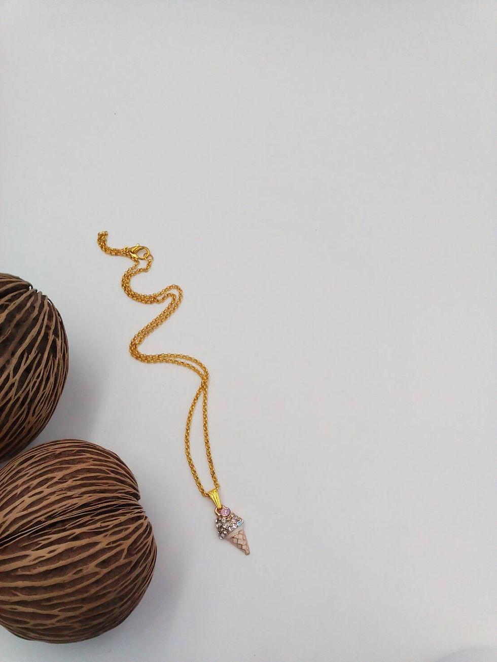 Pastel Ice Cream pendant w/h 18k gold necklace