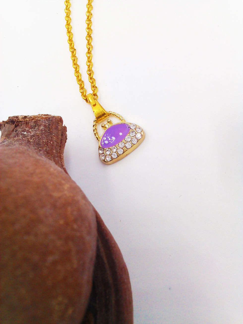 Purple diamond lady handbag 18k gold Necklace Pendant